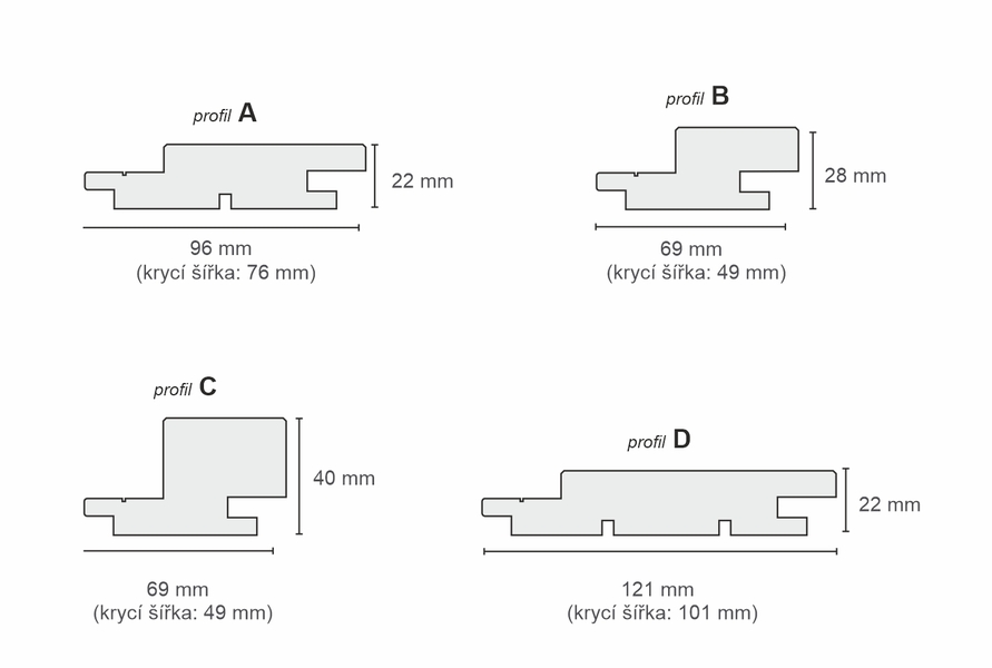 Profily nabízíme v délkách 4,0 a 6,0 bm, po dohodě je možno 5,1 bm.